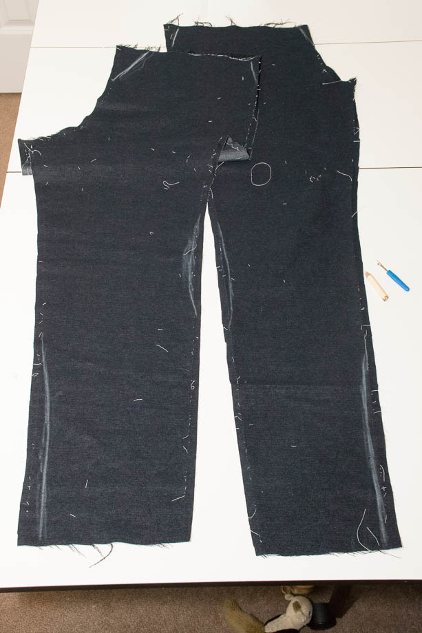Next you need to cut out the waistband and pant cuffs.