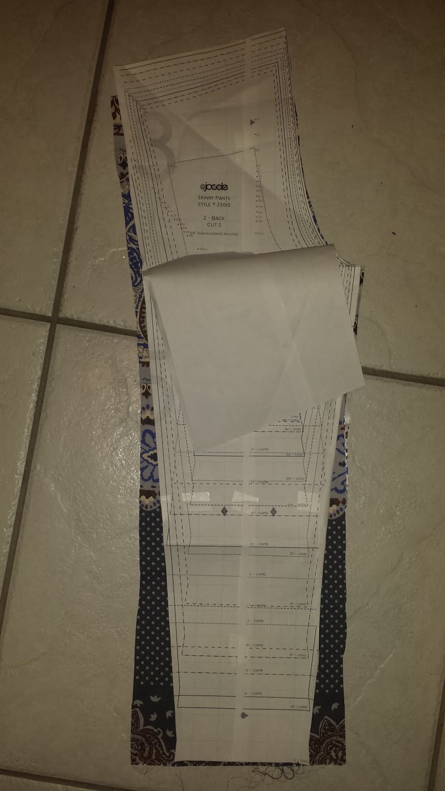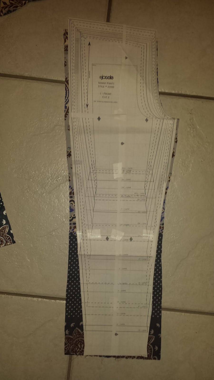 First step is to pick out your fabric. I know joggers are typically made of a sweatshirt like material...but we live in the heart of Florida where even the cold days aren't really all that cold. So I chose a light weight satin-like material for the main pant. Since the skinny pants are made for a woven material you don't HAVE to use a knit for the pants themselves. (Bonus for those of us that have oodles of woven in our stash and are running low on knits!) However, the pant cuffs and waistband DO need to be made from knit. I also opted to do the pockets from the same knit material just to add a little interest. (Have you seen the pocket tutorial?? it's awesome)