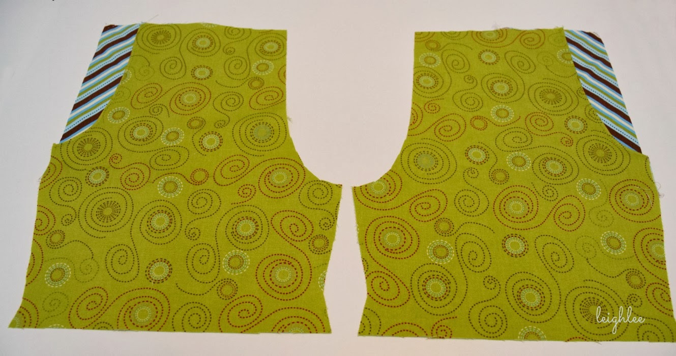 Once you have both the front and back cut out, put the back to the side and focus on the front for a minute. It's time to cut out the pocket opening. (OR use the Jocole pocket tutorial, linked above). If you have a pocket pattern for this part, GREAT!!! ...I couldn't find mine so I had to improvise. Which, honestly is not that difficult to do. Keep your two front pieces stacked to cut so that they are equal.You want to come down just far enough that it makes a decent pocket opening. About 3/4 of the length of my child's hand is how far down I go. And you don't want the pocket opening as wide as it is long. Then just do a gentle curve cut out similar to the rise curve but angled in towards the center more. (See picture below.)